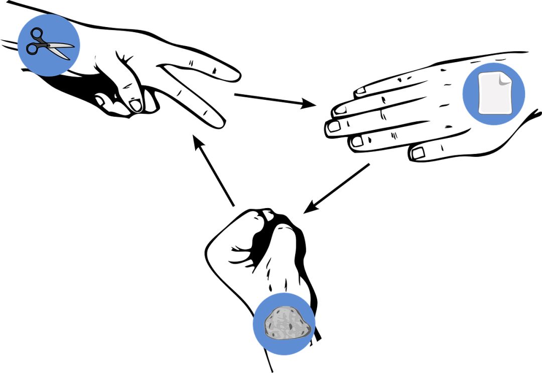 比如说你和同学玩石头剪刀布,每一次他出什么对你而言是不确定的,这就是随机。