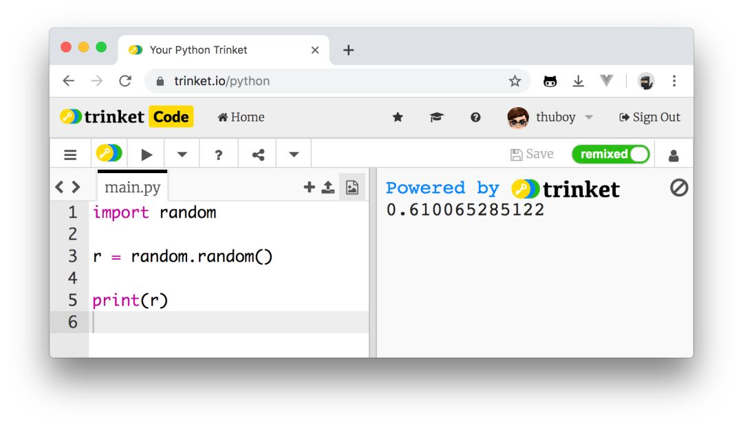 这个随机数是从 0 到 1 但不包括 1 的一个小数,每运行一次都会变换一个。