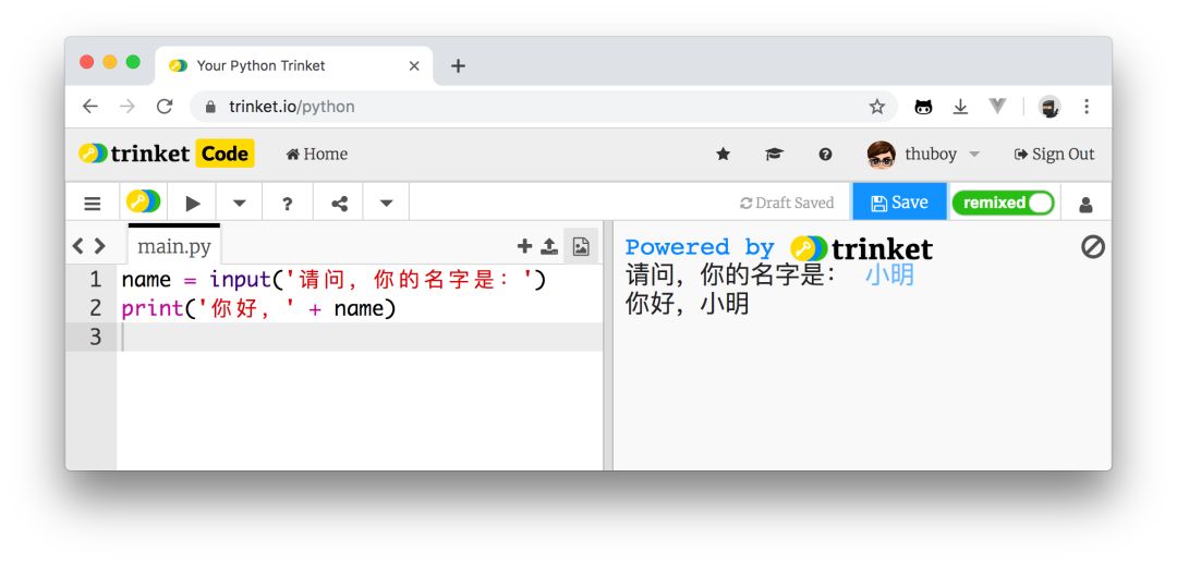 name = input('请问,你的名字是:')