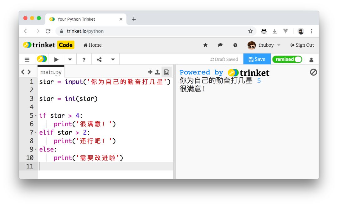 star = input('你为自己的勤奋打几星')