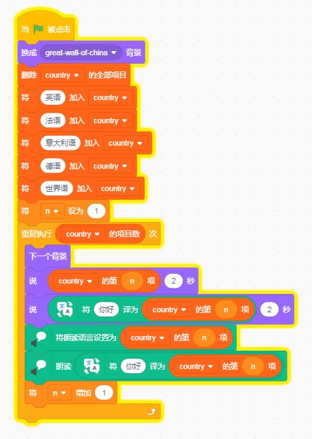 好啦,这样我们就对 Scratch 中的 “翻译”、“朗读” 和 “列表” 有了初步的了解,现在,我们综合使用这三部分的内容,来做我们今天的作品~